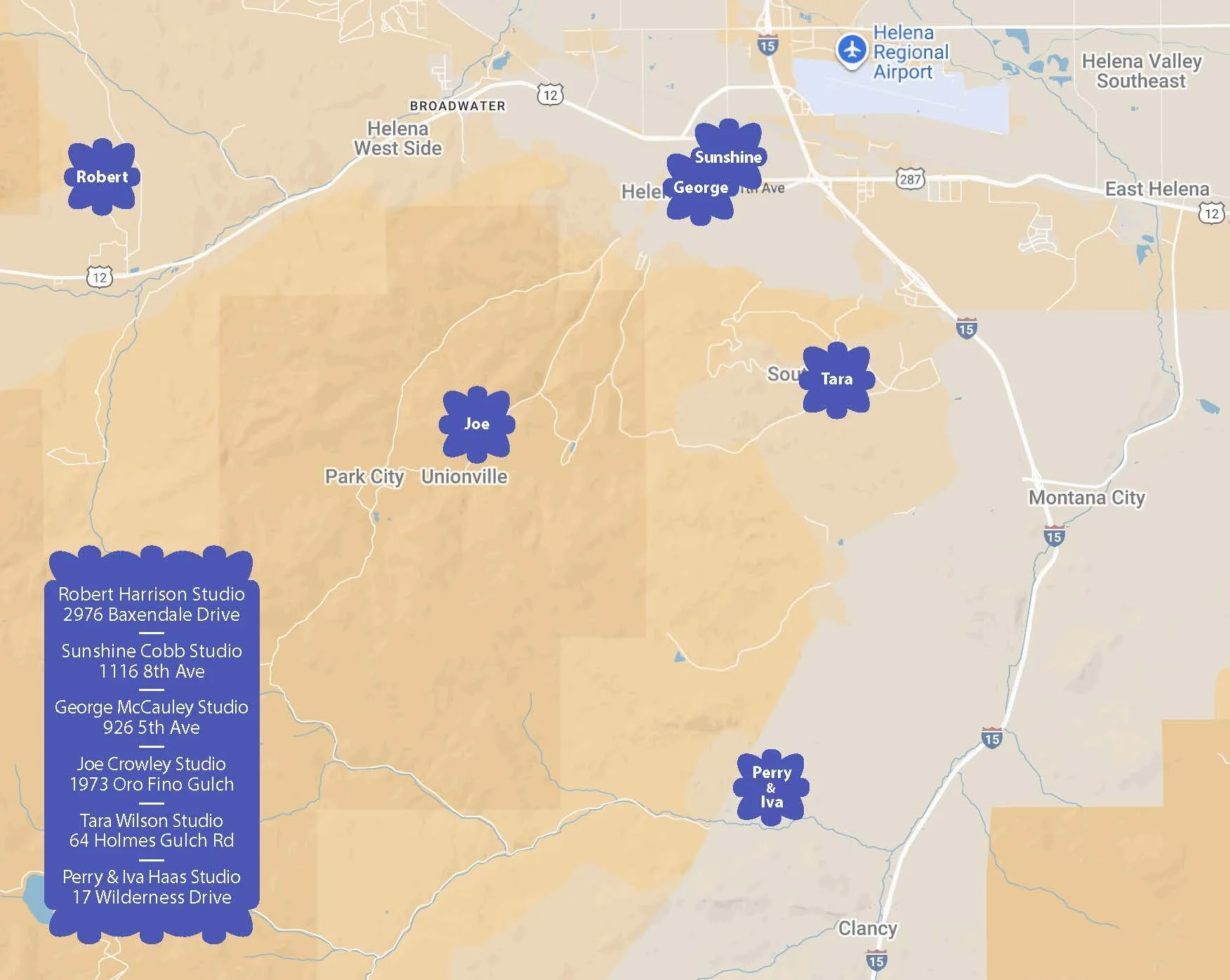 We are excited to have you visit us in Helena, MT. We host an annual ceramic-centric event with a fantastic collection of potters and ceramic artists from Montana. The tour comprises SIX stops, all within easy driving distance of each other. Below is the map of the tour stops; we recommend you print it out in case your cell phone service drops out. Coverage is spotty at some stops.